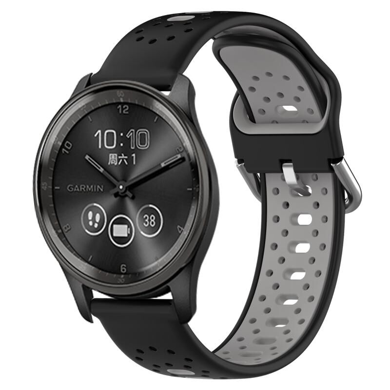 Για το GarminMove Trend 20mm αναπνεύσιμο σιλικόνης ρολόι σιλικόνης δύο χρωμάτων (μαύρο + γκρι)