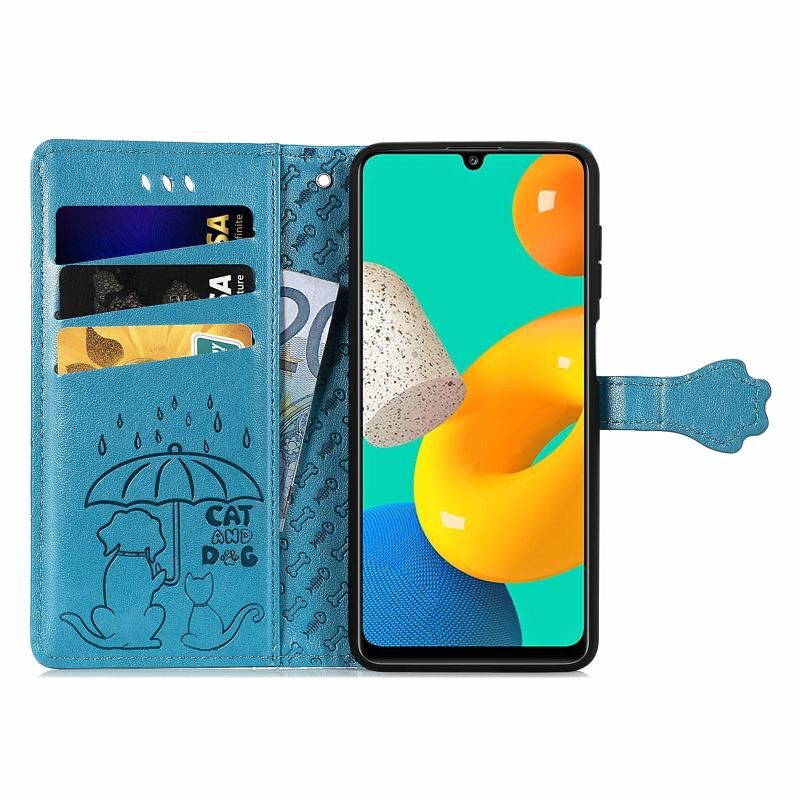 Για Gaxlay M32 Χαριτωμένη γάτα και σκύλος ανάγλυφη οριζόντια Flip δερμάτινη θήκη με θήκη & υποδοχές για κάρτες & πορτοφόλι & κορδόνι (Μπλε)