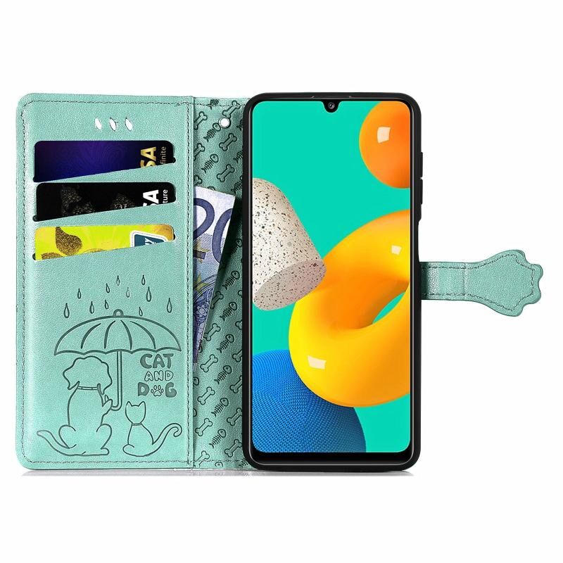 Για Gaxlay M32 Χαριτωμένη γάτα και σκύλος ανάγλυφη οριζόντια Flip δερμάτινη θήκη με θήκη & υποδοχές για κάρτες & πορτοφόλι & κορδόνι (πράσινο)