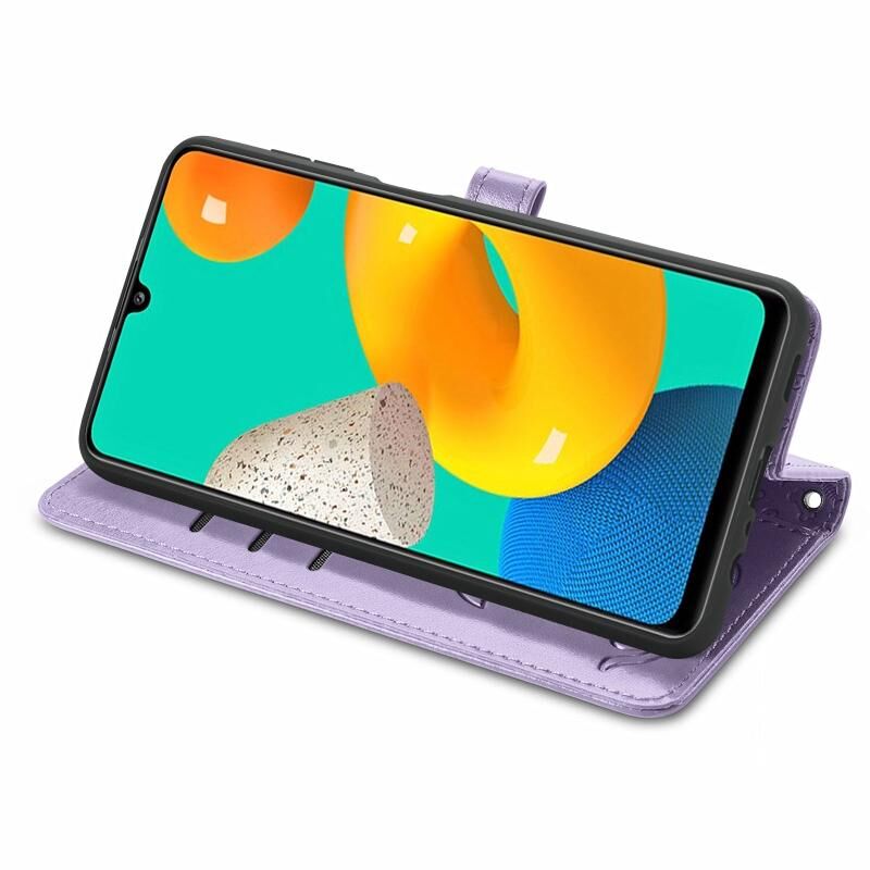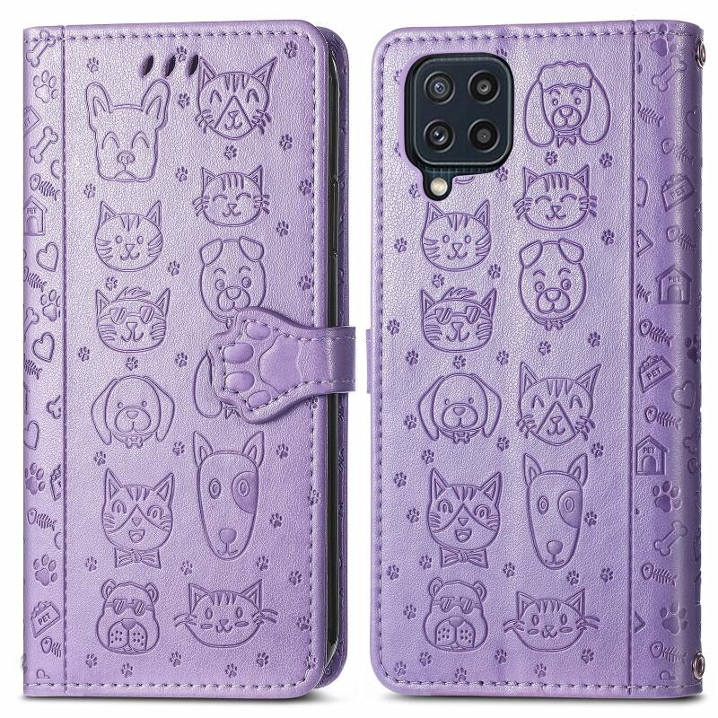 Για Gaxlay M32 Χαριτωμένη γάτα και σκύλος ανάγλυφη οριζόντια Flip δερμάτινη θήκη με θήκη & υποδοχές για κάρτες & πορτοφόλι & κορδόνι (Μωβ)