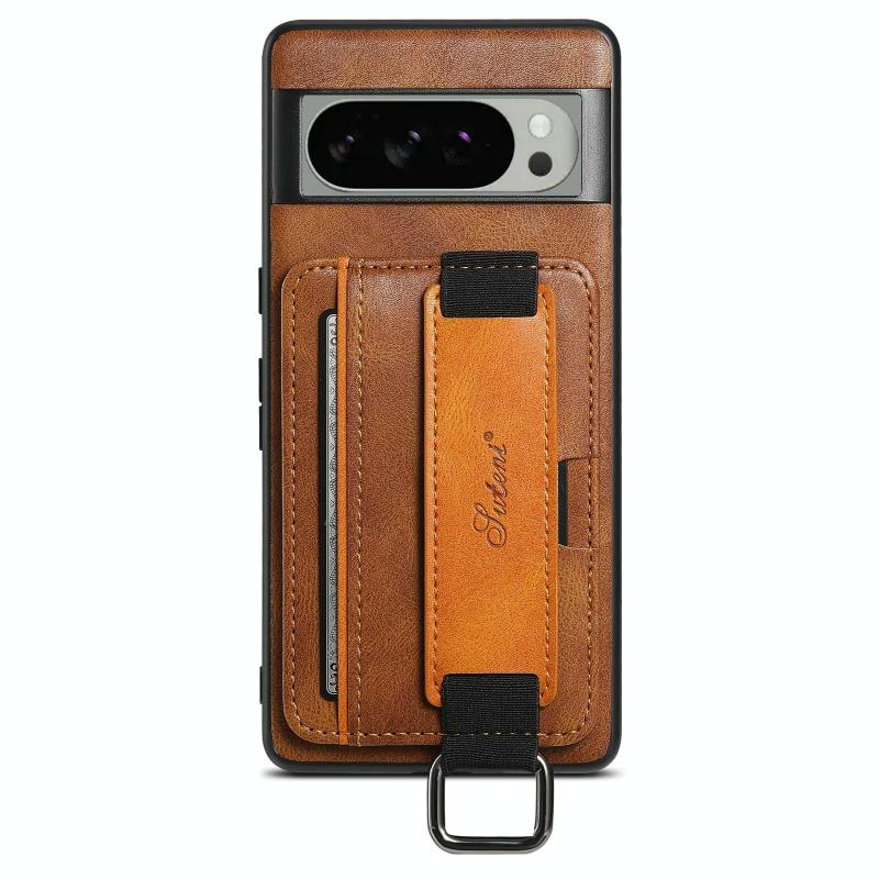 For Googel Pixel 10 Pro XL Suteni H13 Card Wallet Wrist Strap Holder PU Phone Case(Brown) (Suteni)
