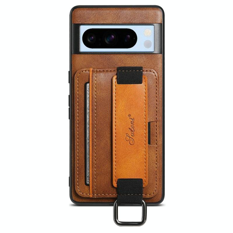 For Googel Pixel 8 Pro Suteni H13 Card Wallet Wrist Strap Holder PU Phone Case(Brown) (Suteni)