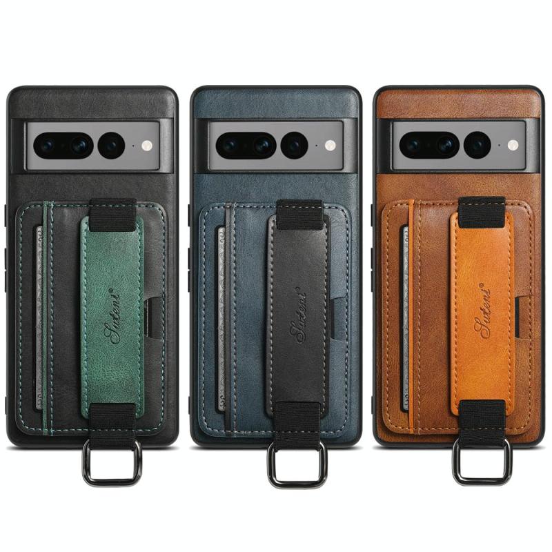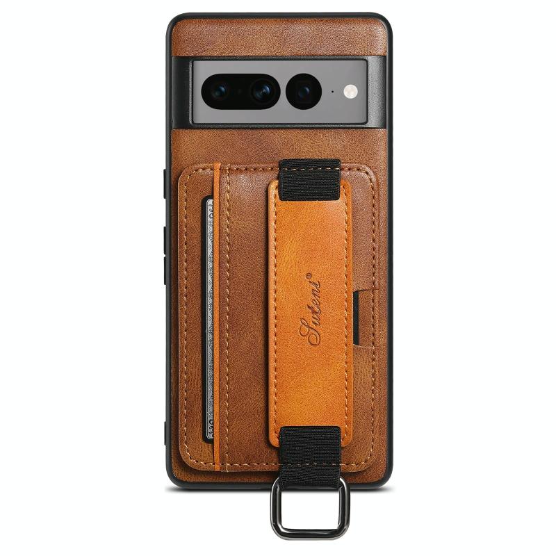 For Googel Pixel 8 Suteni H13 Card Wallet Wrist Strap Holder PU Phone Case(Brown) (Suteni)