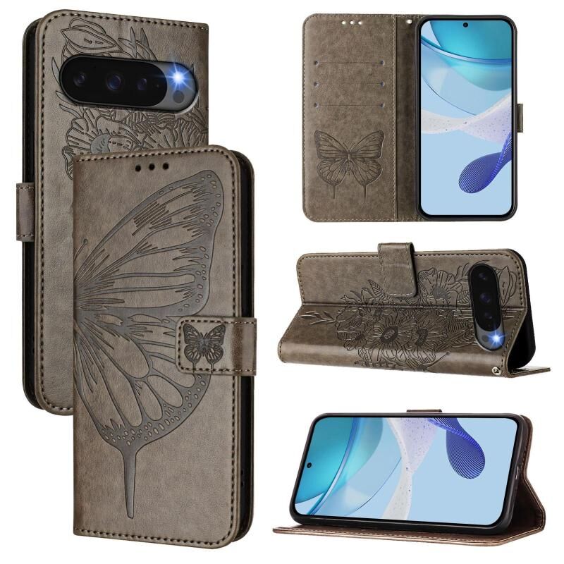 For Google Pixel 10 / 10 Pro+ Embossed Butterfly Leather Phone Case(Grey)