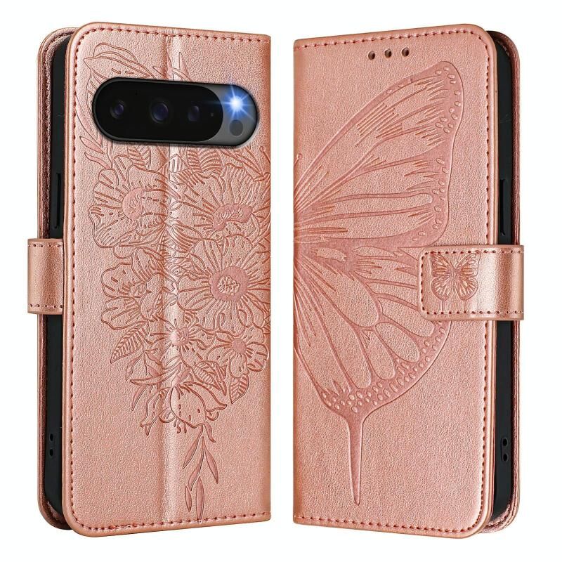 For Google Pixel 10 / 10 Pro+ Embossed Butterfly Leather Phone Case(Rose Gold)