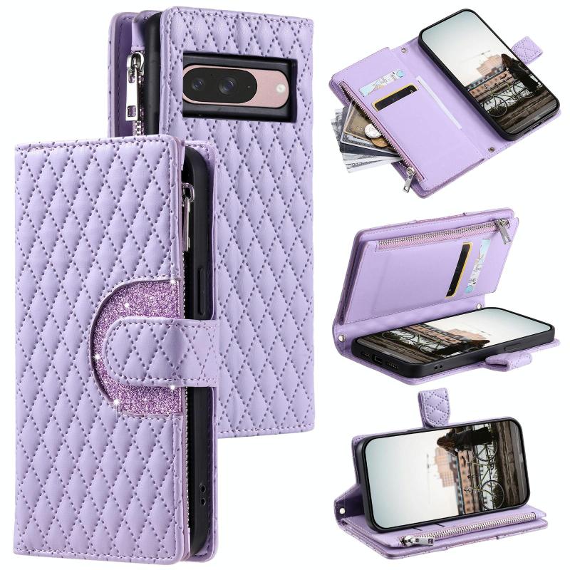 For Google Pixel 10 / 10 Pro Glitter Lattice Zipper Wallet Leather Phone Case(Purple)