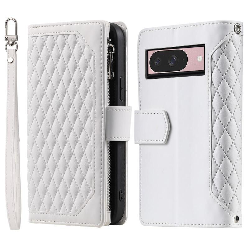 For Google Pixel 10 / 10 Pro Grid Texture Zipper Leather Phone Case with Lanyard(White)