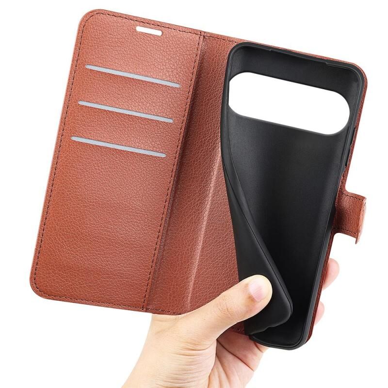 Θήκη τηλεφώνου από δέρμα με οριζόντιο άνοιγμα και υφή Litchi για Google Pixel 10 / 10 Pro με βάση στήριξης (Λευκό)