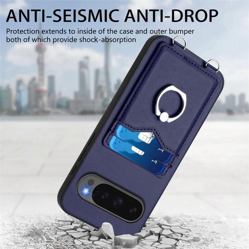 For Google Pixel 10 / 10 Pro R20 Ring Card Holder Phone Case(Blue)