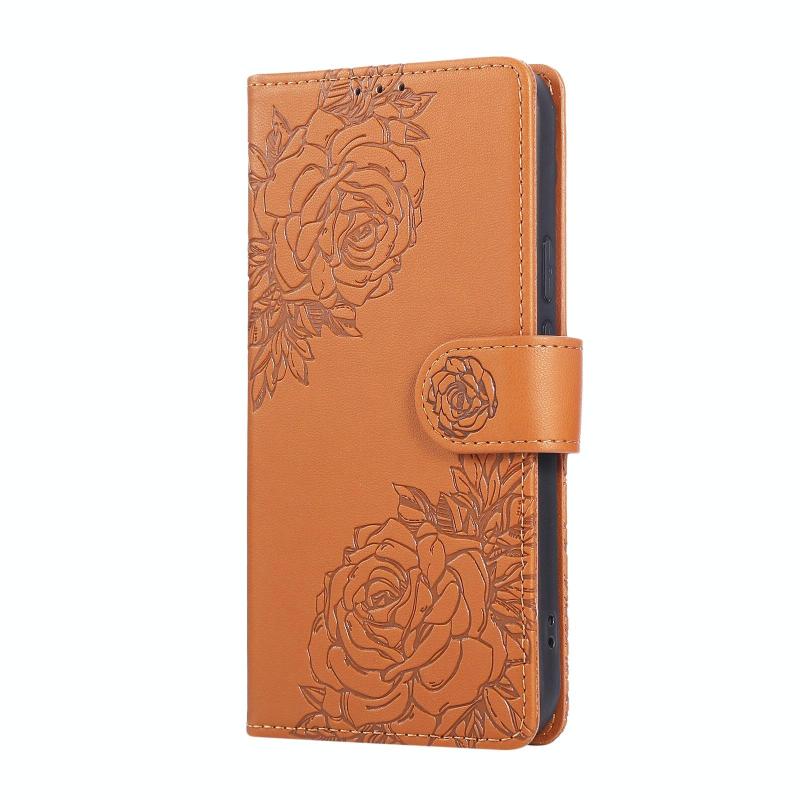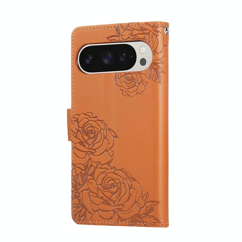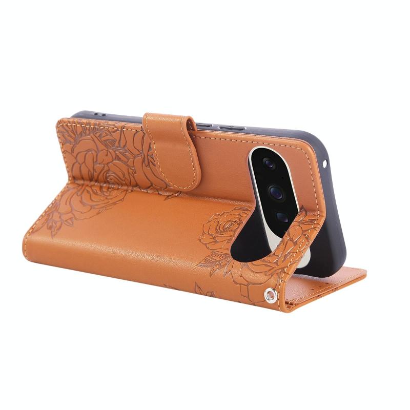 For Google Pixel 10 / 10 Pro Rose Flower Embossed 3-Card Slots Leather Phone Case(Brown)