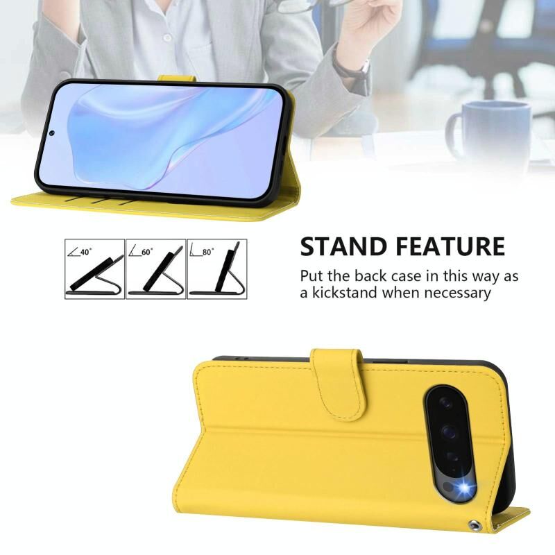 Θήκη τηλεφώνου από δέρμα με συμπαγή χρώμα για Google Pixel 10 / 10 Pro με κορδόνι (Κιτρινό λεμονί)