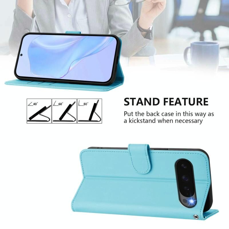 For Google Pixel 10 / 10 Pro Skin Feel Solid Color Leather Phone Case with Lanyard(Sky Blue)