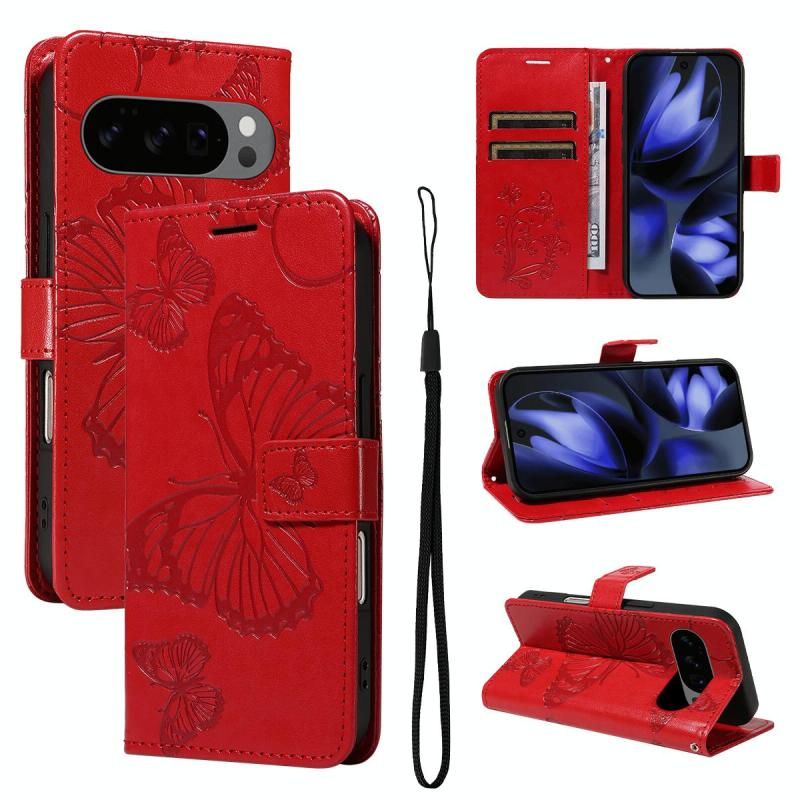 For Google Pixel 10 Global 3D Butterfly Embossed Pattern Flip Leather Phone Case(Red)