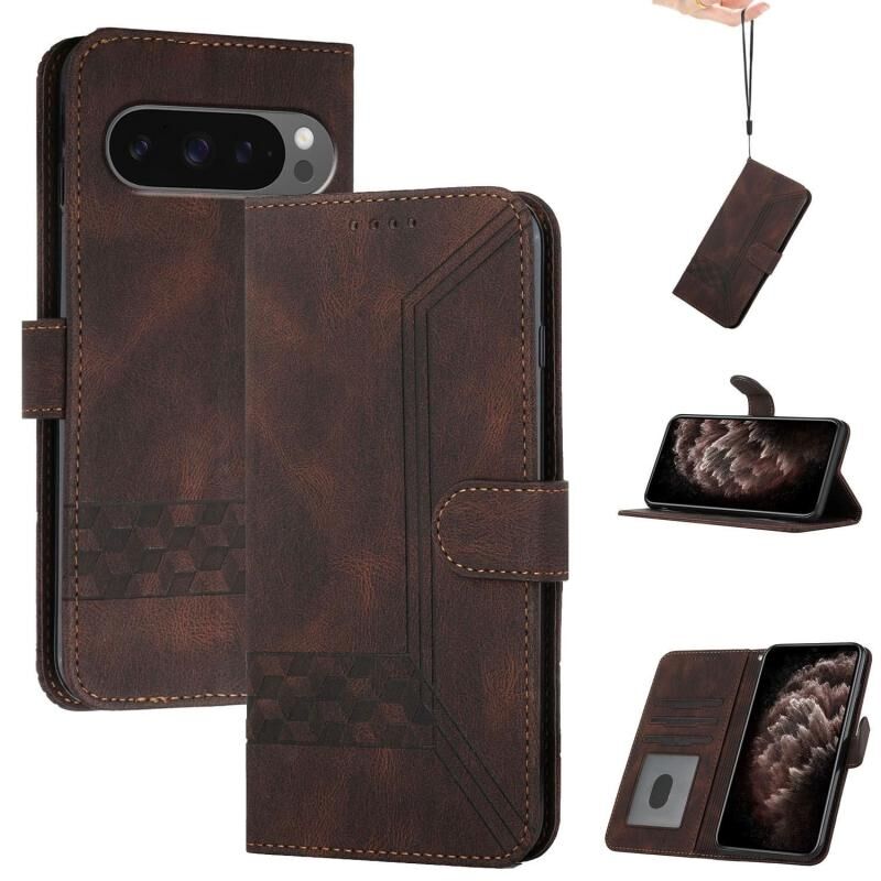 For Google Pixel 10 / Pixel 10 Pro Cubic Skin Feel Flip Leather Phone Case(Brown)