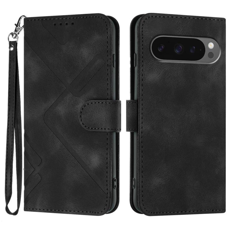 For Google Pixel 10 / Pixel 10 Pro Line Pattern Skin Feel Leather Phone Case(Black)