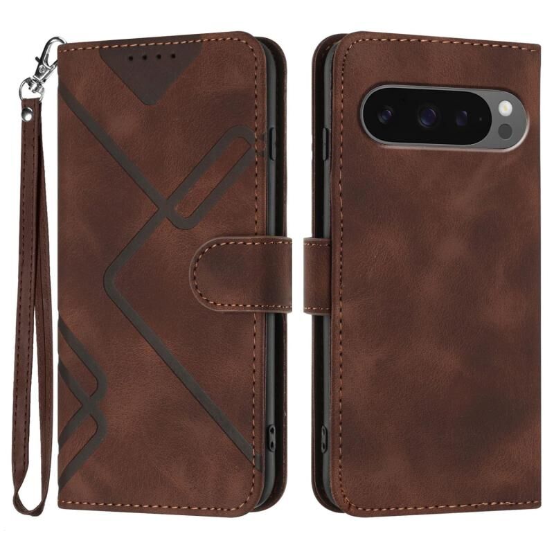 For Google Pixel 10 / Pixel 10 Pro Line Pattern Skin Feel Leather Phone Case(Coffee)