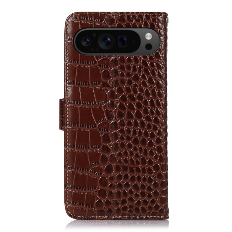 For Google Pixel 10 Pro / 9 Pro Crocodile Top Layer Cowhide Leather Phone Case(Brown)