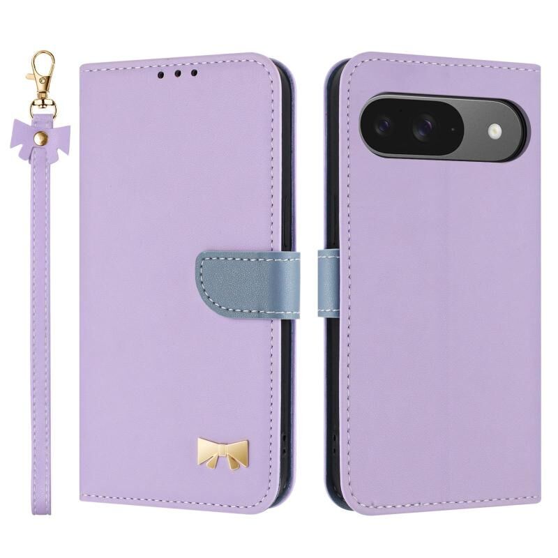 For Google Pixel 10 Pro / 9 Pro Metal Bow Leather Phone Case with Hand Strap(Purple)