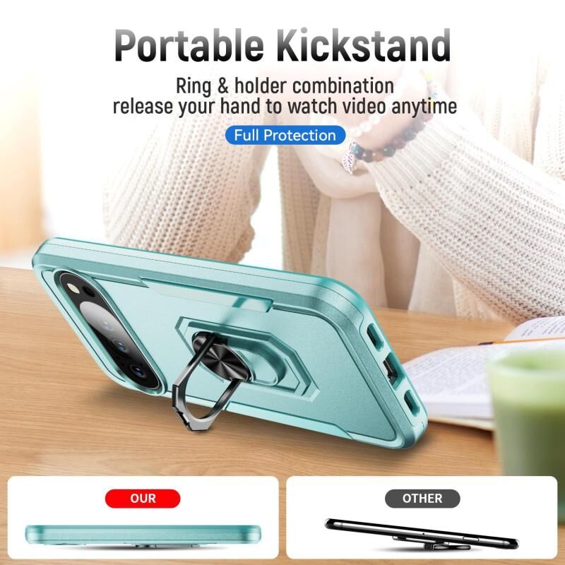 For Google Pixel 10 Pro Pioneer Armor Heavy Duty PC + TPU Phone Case with Holder(Green)