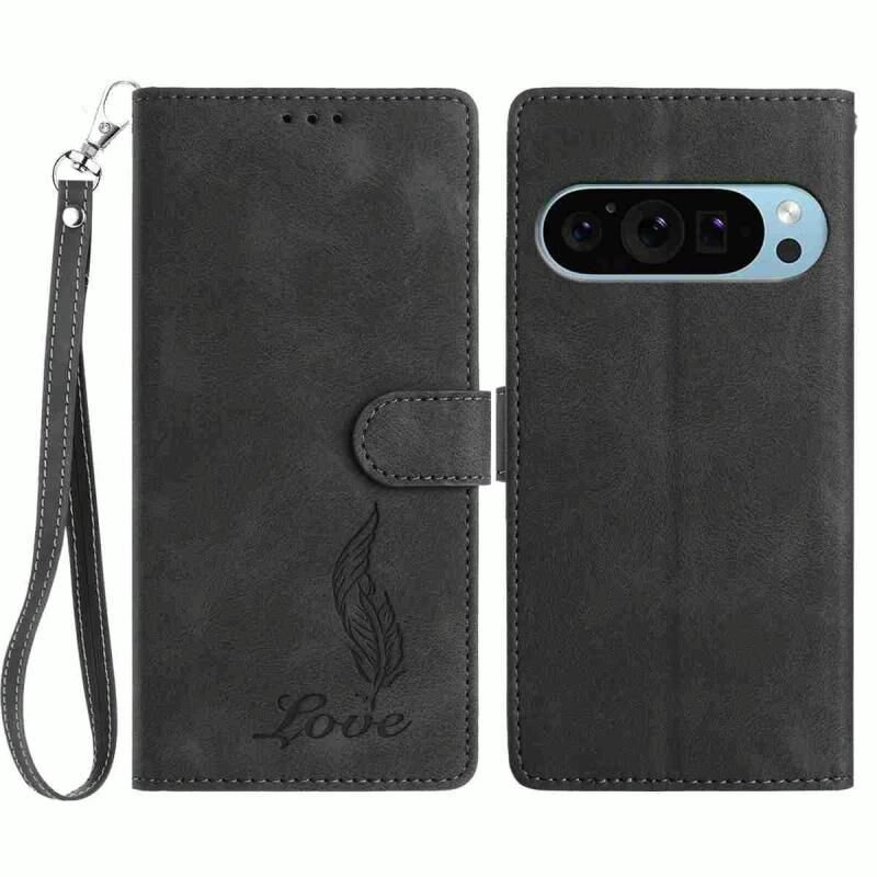 For Google Pixel 10 Pro Skin Feel Embossed Feather Leather Phone Case(Black)