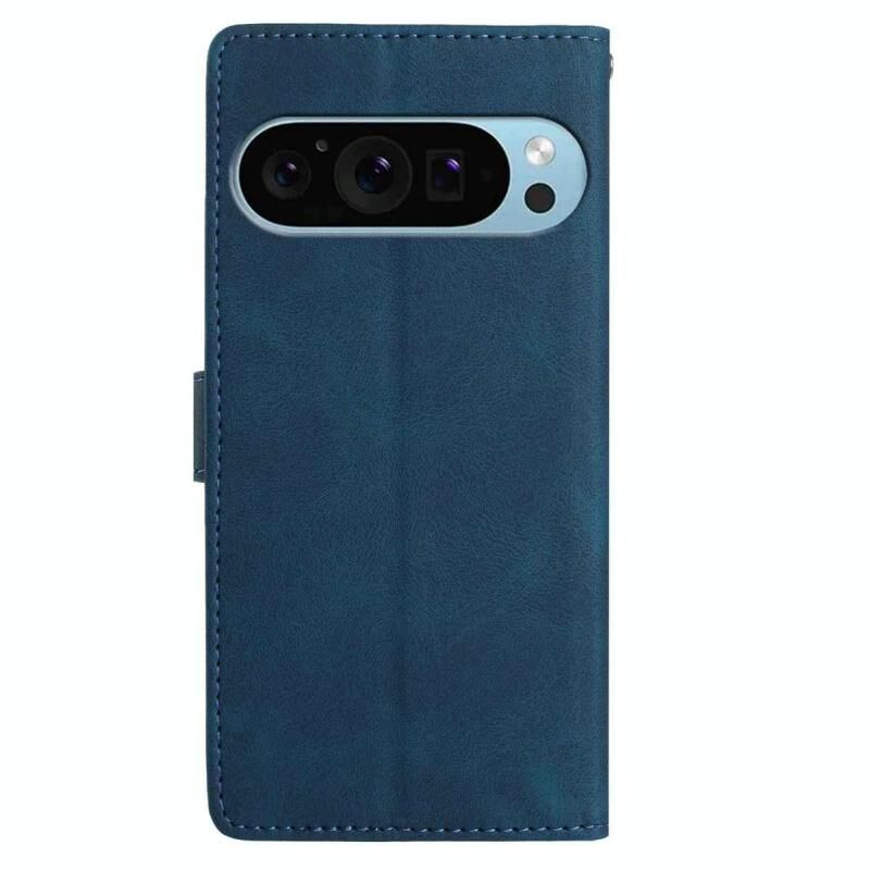 For Google Pixel 10 Pro Skin Feel Embossed Feather Leather Phone Case(Dark Blue)