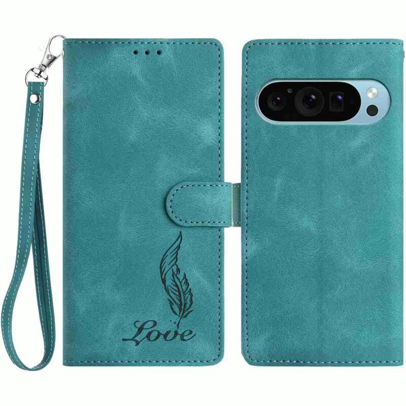 For Google Pixel 10 Pro Skin Feel Embossed Feather Leather Phone Case(Green)