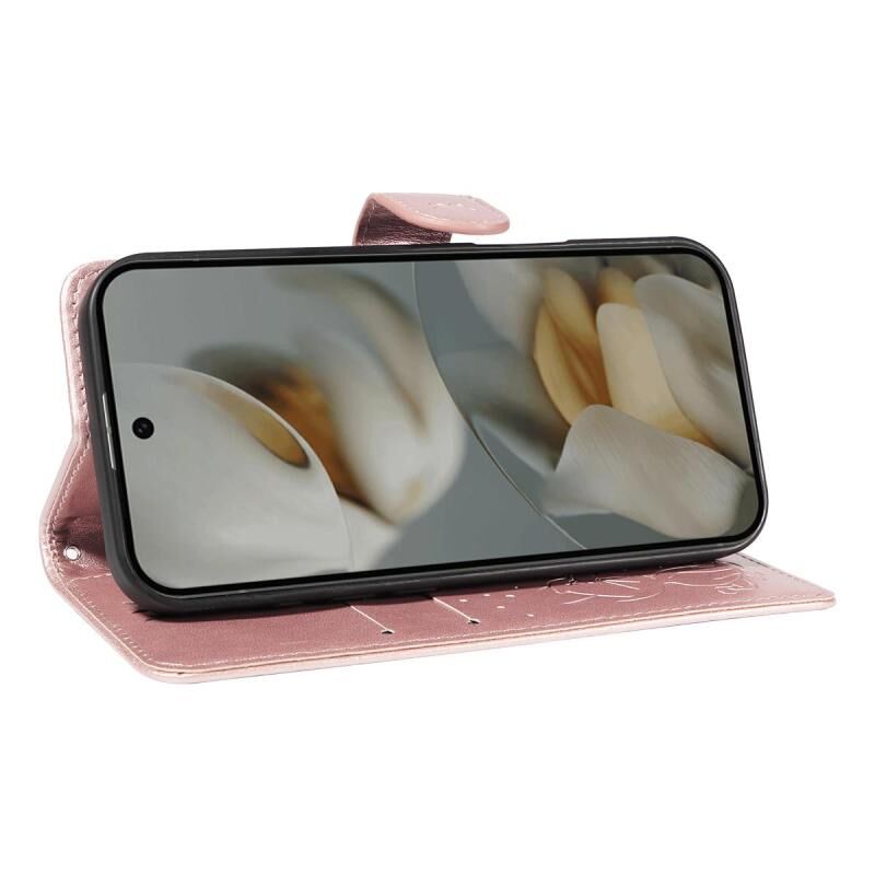 For Google Pixel 10 Pro XL 5G Global Cat and Bee Embossed Flip Leather Phone Case(Rose Gold)