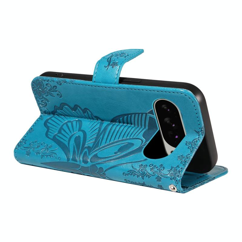 For Google Pixel 10 Pro XL 5G Global Swallowtail Butterfly Embossed Leather Phone Case(Blue)