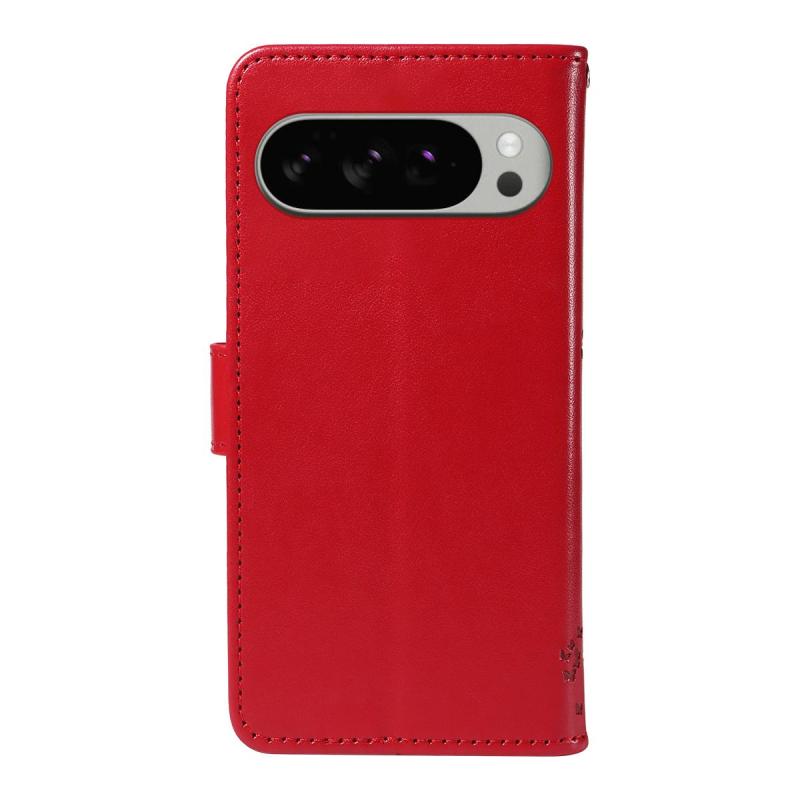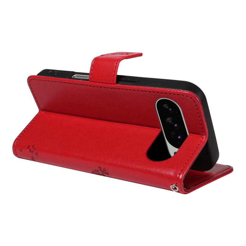 For Google Pixel 10 Pro XL 5G Global Tree & Cat Embossed Pattern Flip Leather Phone Case(Red)