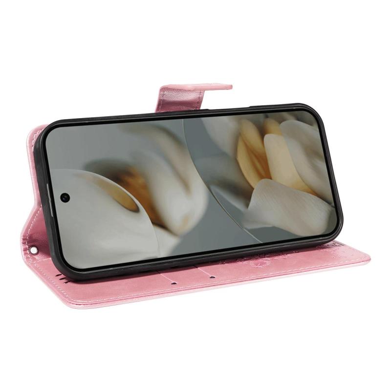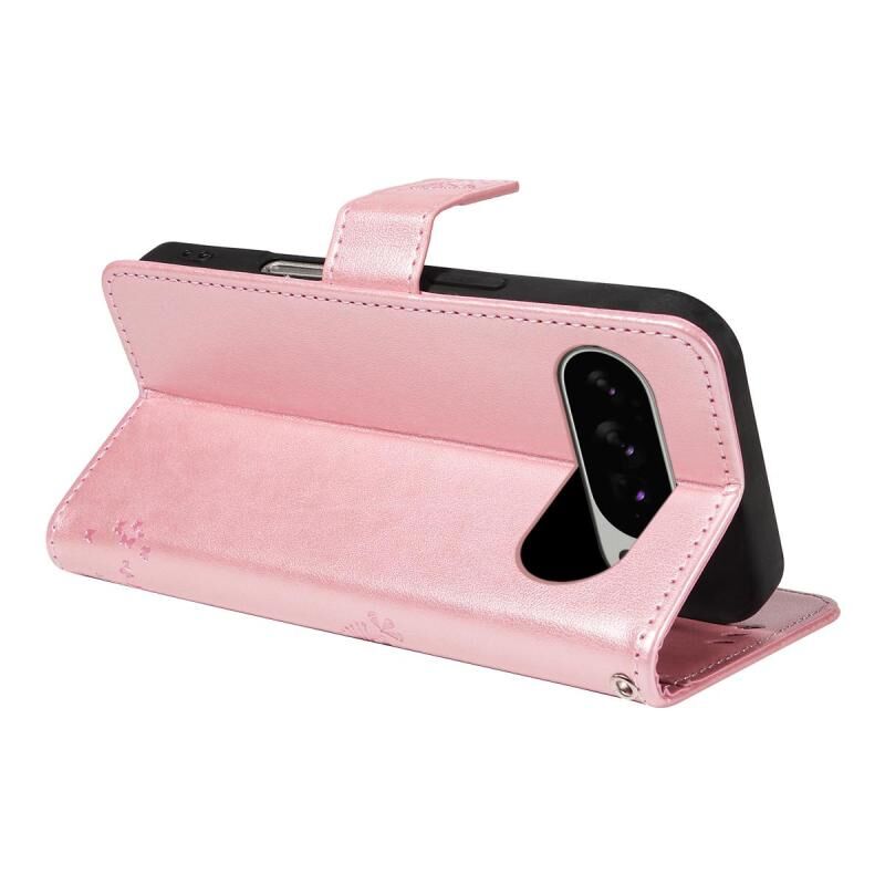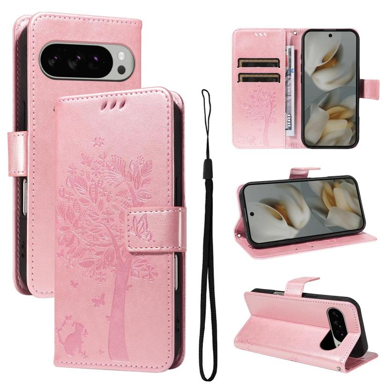 For Google Pixel 10 Pro XL 5G Global Tree & Cat Embossed Pattern Flip Leather Phone Case(Rose Gold)