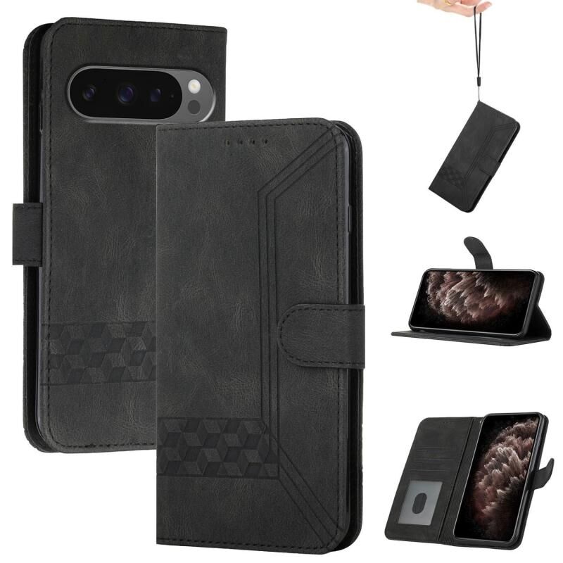 For Google Pixel 10 Pro XL Cubic Skin Feel Flip Leather Phone Case(Black)