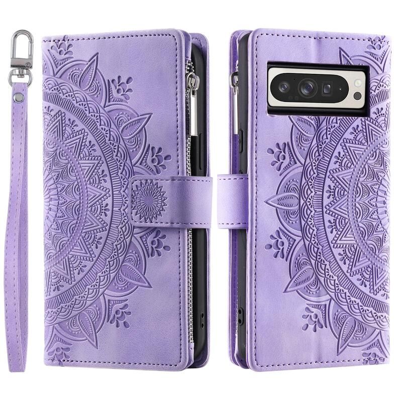 For Google Pixel 10 Pro XL Multi-Card Totem Zipper Leather Phone Case(Purple)