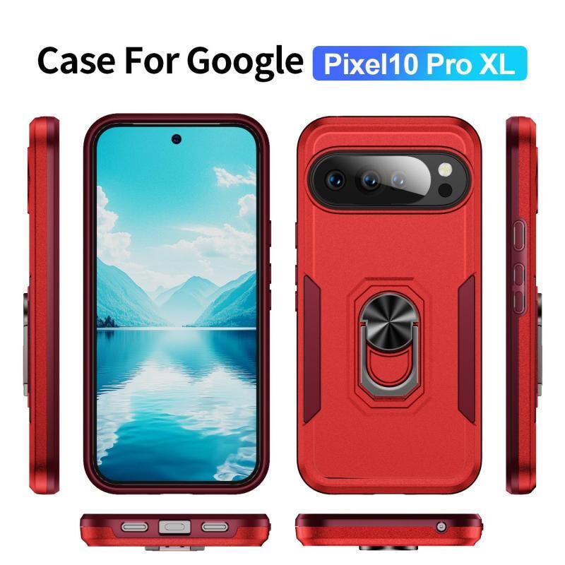 For Google Pixel 10 Pro XL Pioneer Armor Heavy Duty PC + TPU Phone Case with Holder(Red+Rose Red)