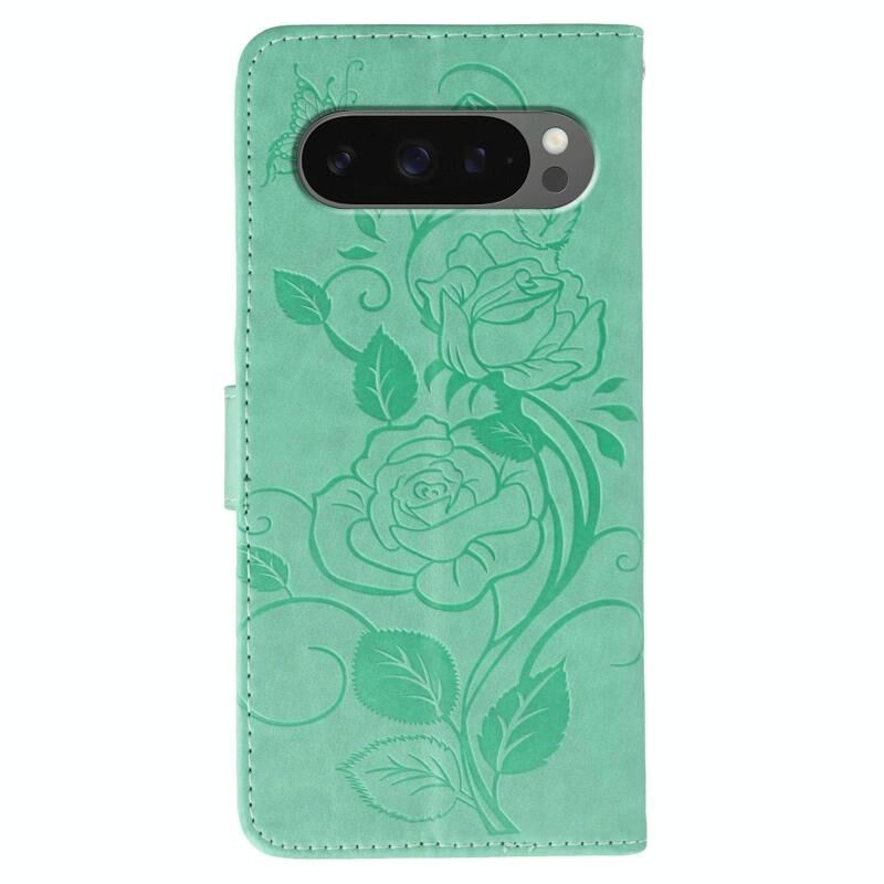 For Google Pixel 10 Pro XL Rose Butterfly Embossed Leather Phone Case(Green)