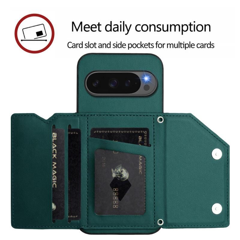 For Google Pixel 10 Pro XL Skin Feel Four Card Slots Phone Case with Wrist Strap(Green)