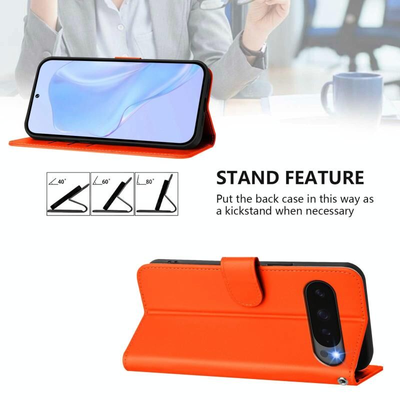 For Google Pixel 10 Pro XL Skin Feel Solid Color Leather Phone Case with Lanyard(Orange)