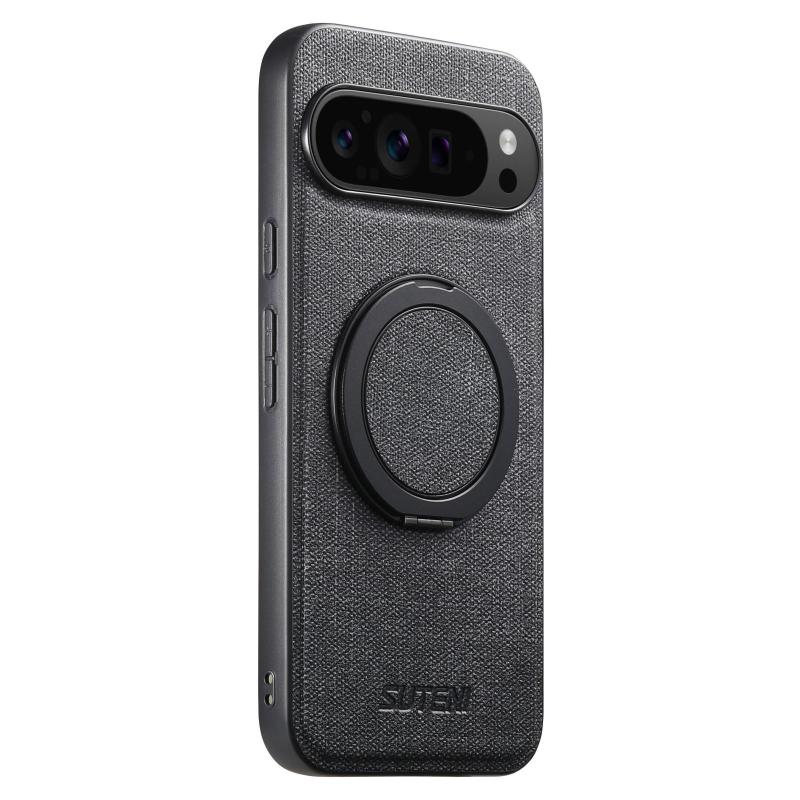 For Google Pixel 10 Pro XL Suteni G3 360 Rotation Holder MagSafe Denim Leather Back Phone Case(Black) (Suteni)