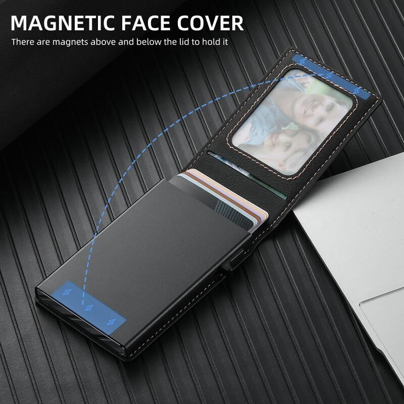 1. Material: PU leather +TPU+PC+ magnet + metal card box