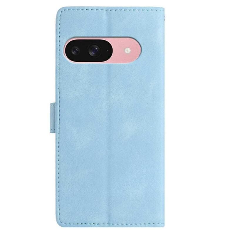 For Google Pixel 10 Skin Feel Embossed Feather Leather Phone Case(Light Blue)