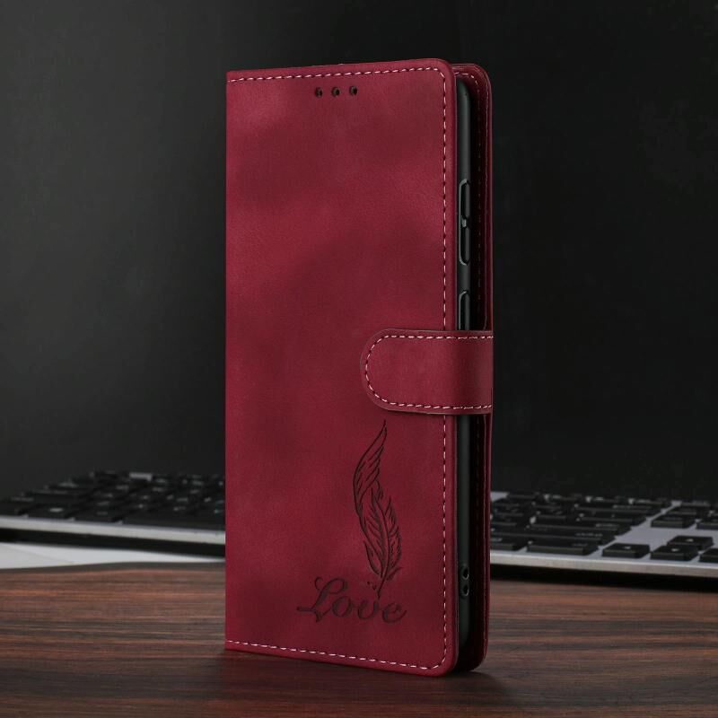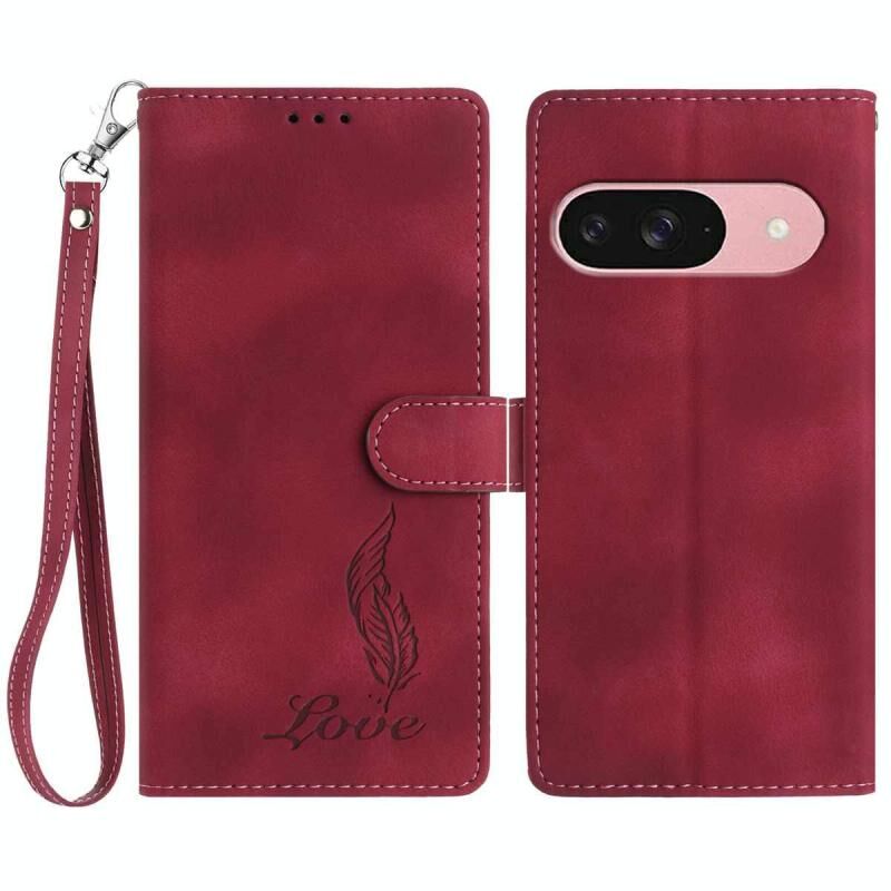 For Google Pixel 10 Skin Feel Embossed Feather Leather Phone Case(Red)