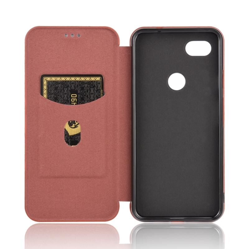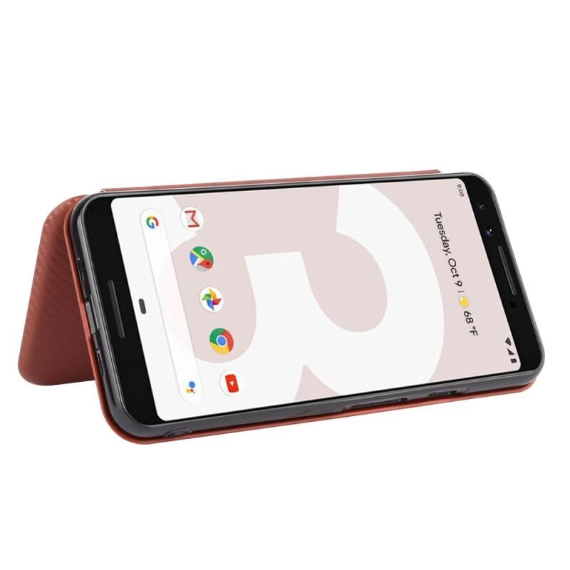 For Google Pixel 3 Carbon Fiber Texture Horizontal Flip TPU + PC + PU Leather Case with Card Slot(Brown)