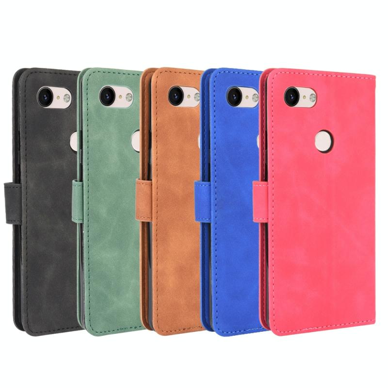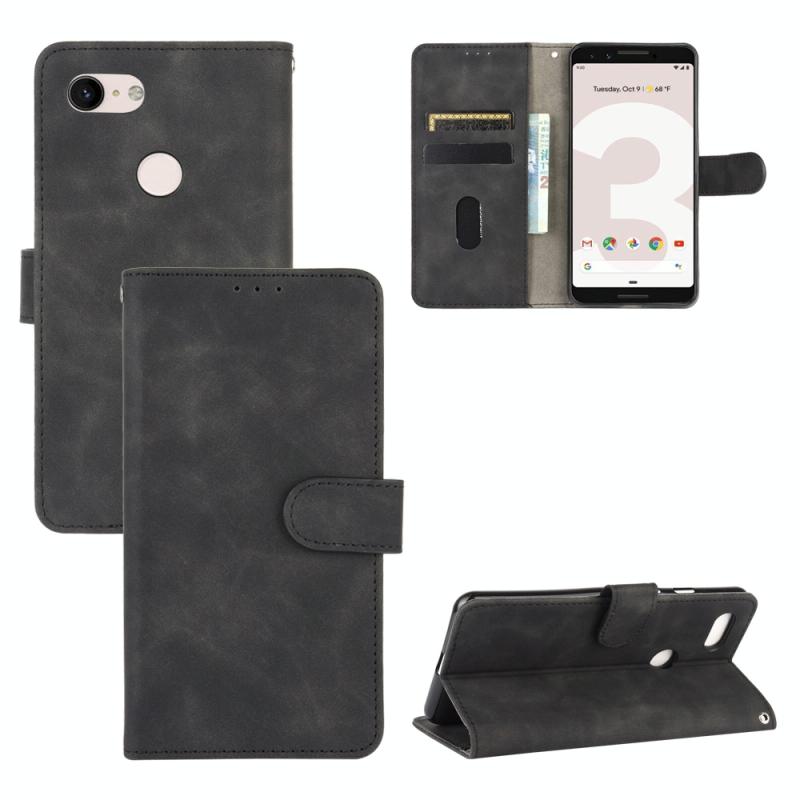 For Google Pixel 3 Solid Color Skin Feel Magnetic Buckle Horizontal Flip Calf Texture PU Leather Case with Holder & Card Slots & Wallet(Black)