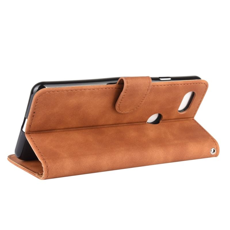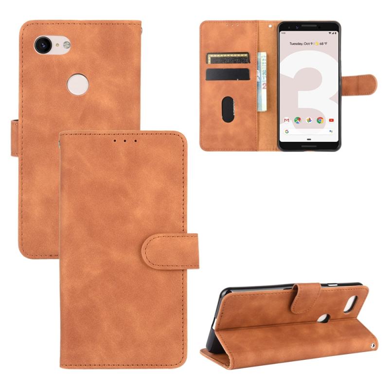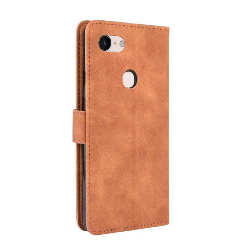 For Google Pixel 3 Solid Color Skin Feel Magnetic Buckle Horizontal Flip Calf Texture PU Leather Case with Holder & Card Slots & Wallet(Brown)
