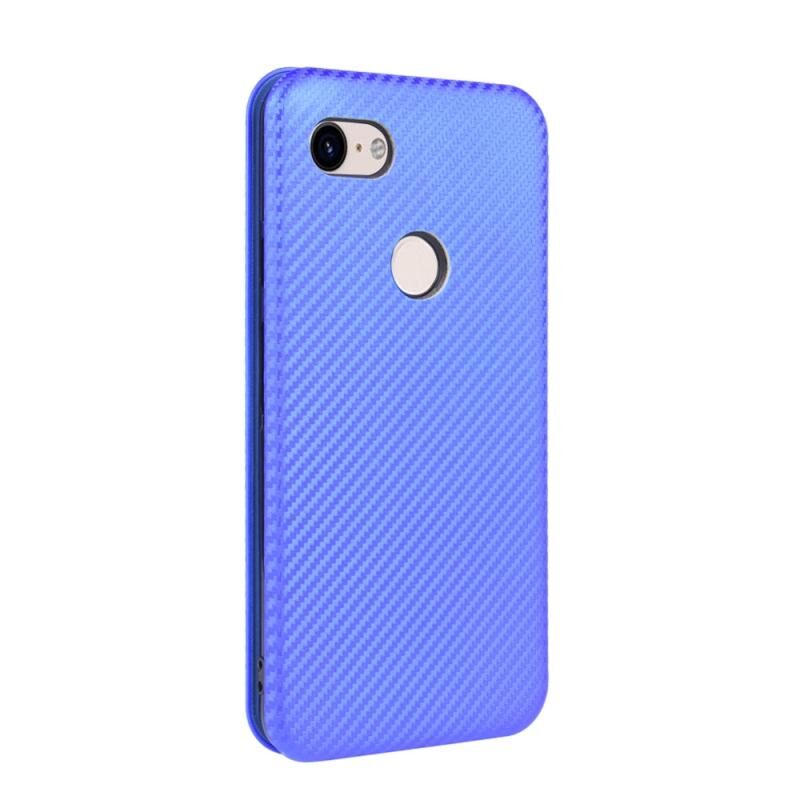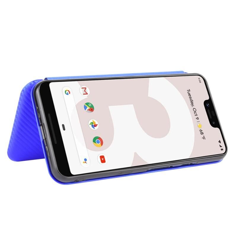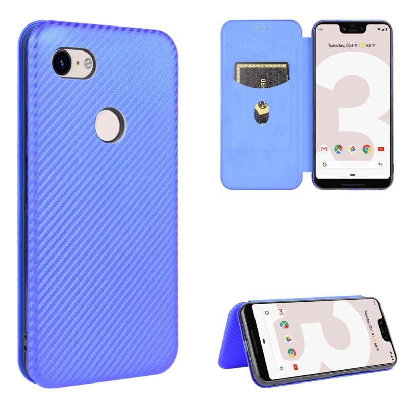 For Google Pixel 3 XL Carbon Fiber Texture Horizontal Flip TPU + PC + PU Leather Case with Card Slot(Blue)