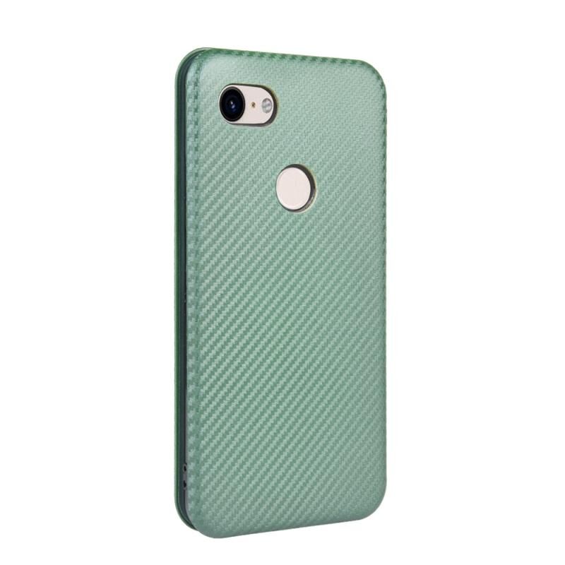 For Google Pixel 3 XL Carbon Fiber Texture Horizontal Flip TPU + PC + PU Leather Case with Card Slot(Green)