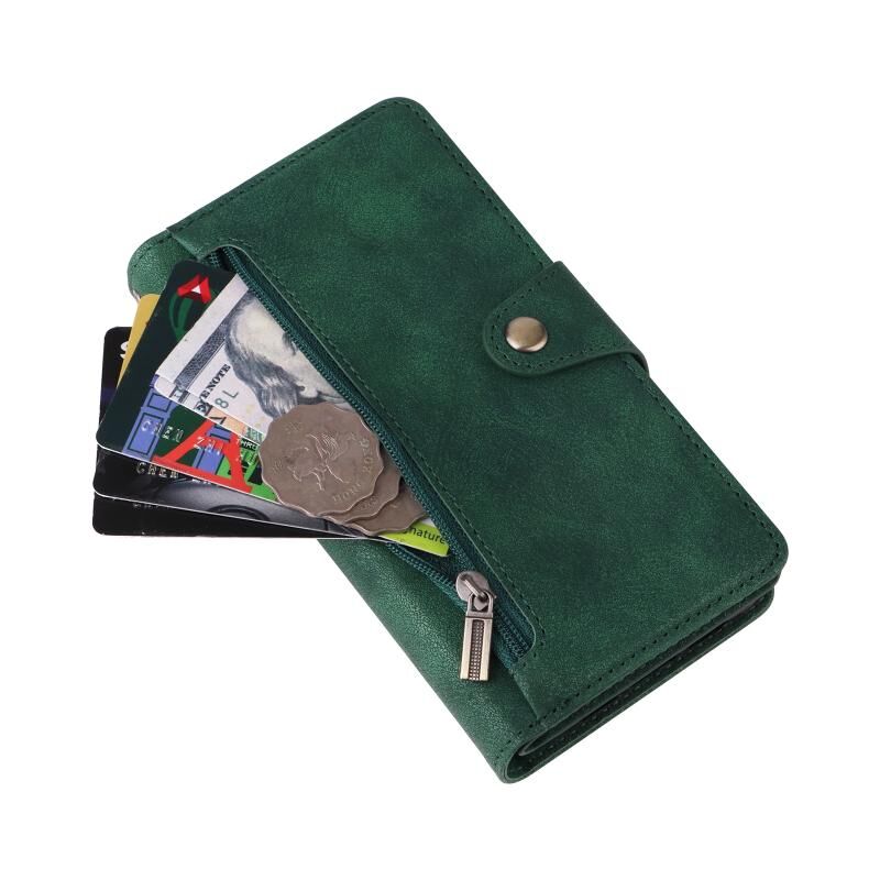 Για το Google Pixel 3A Rivet πόρπη 9 κάρτες τρεις φορές δερμάτινη θήκη τηλεφώνου (πράσινο)