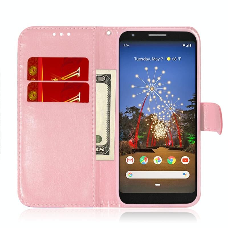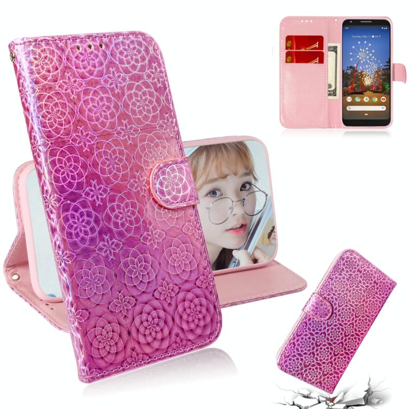 For Google Pixel 3A Solid Color Colorful Magnetic Buckle Horizontal Flip PU Leather Case with Holder & Card Slots & Wallet & Lanyard(Pink)