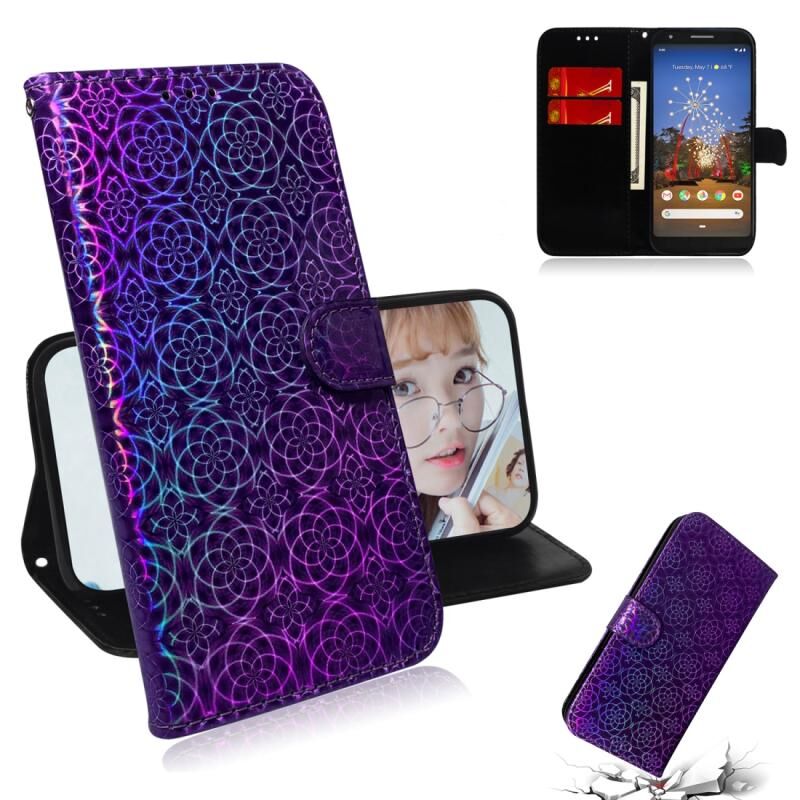 Για Google Pixel 3A Αμιγές χρώμα πολύχρωμο μαγνητική πόρπη οριζόντια Flip PU δέρμα υπόθεση με κάτοχο & υποδοχές για κάρτες & πορτοφόλι & κορδόνι (μωβ)