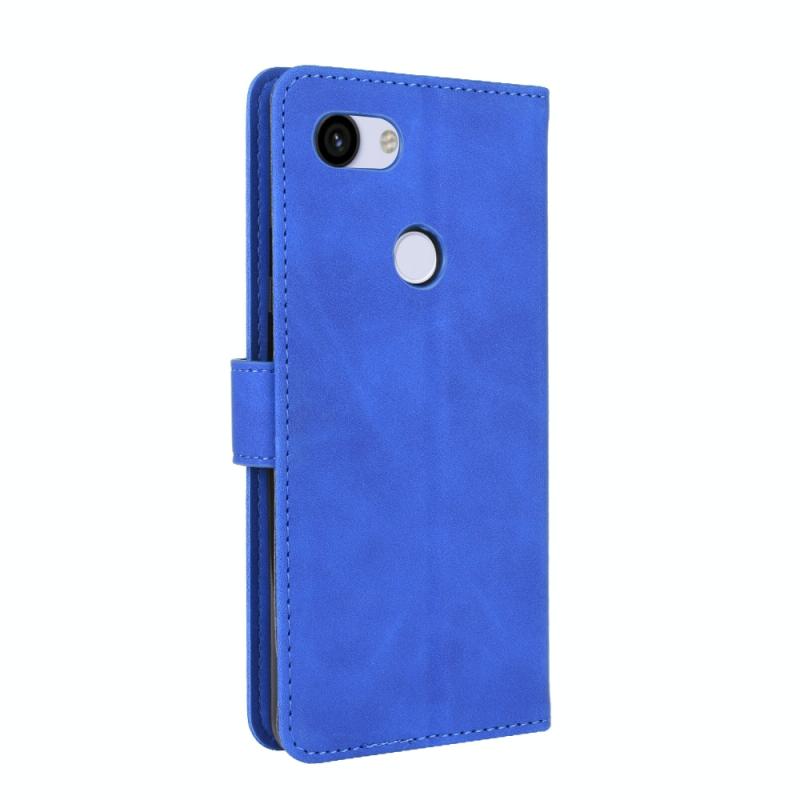 For Google Pixel 3a Solid Color Skin Feel Magnetic Buckle Horizontal Flip Calf Texture PU Leather Case with Holder & Card Slots & Wallet(Blue)
