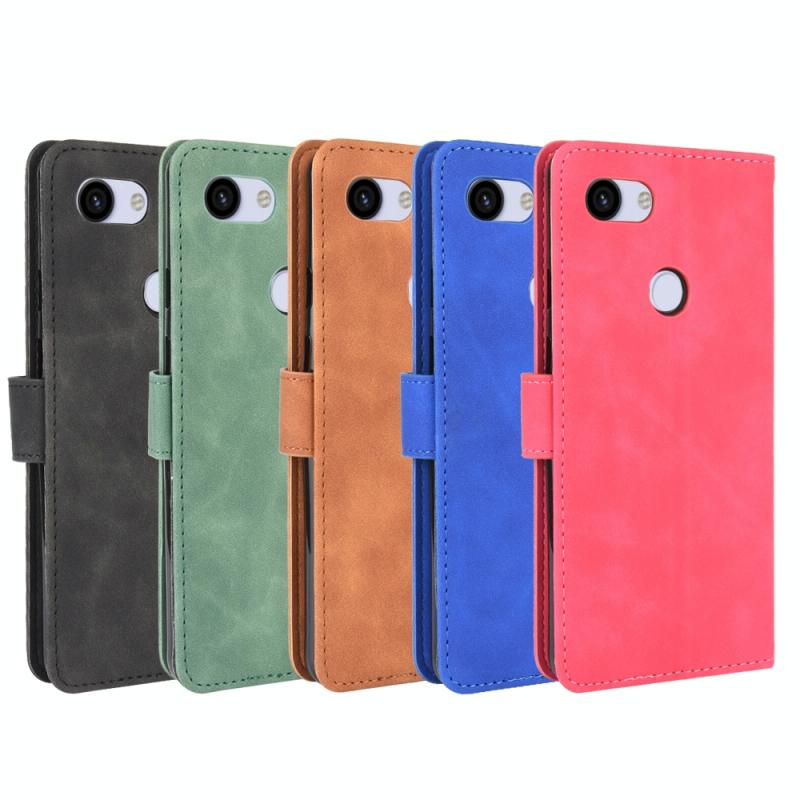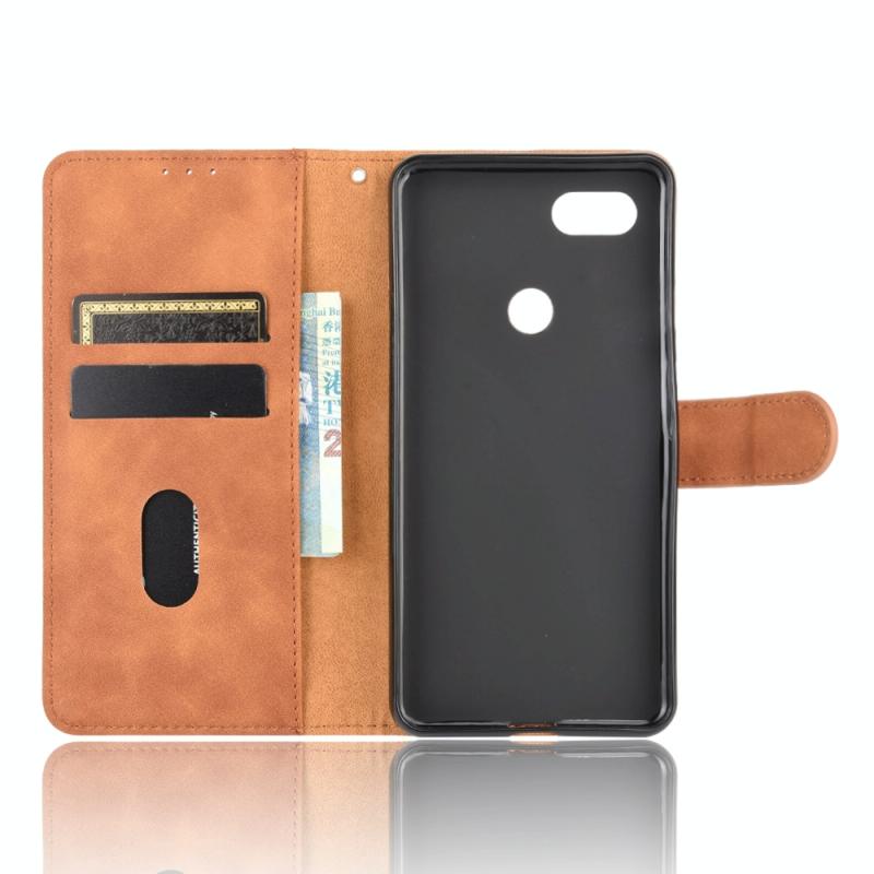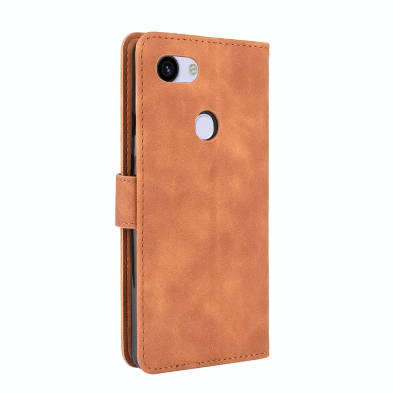 For Google Pixel 3a Solid Color Skin Feel Magnetic Buckle Horizontal Flip Calf Texture PU Leather Case with Holder & Card Slots & Wallet(Brown)